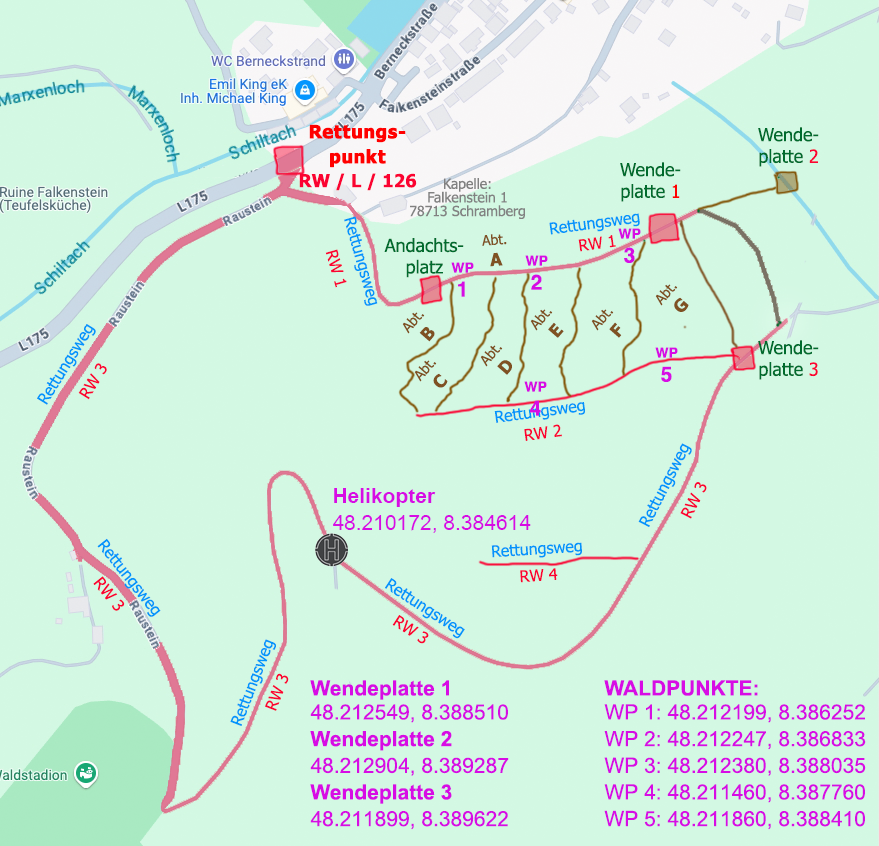 Orientierungspunkte im Bestattungswald an den Hauptwegen sind von weitem gut sichtbar: